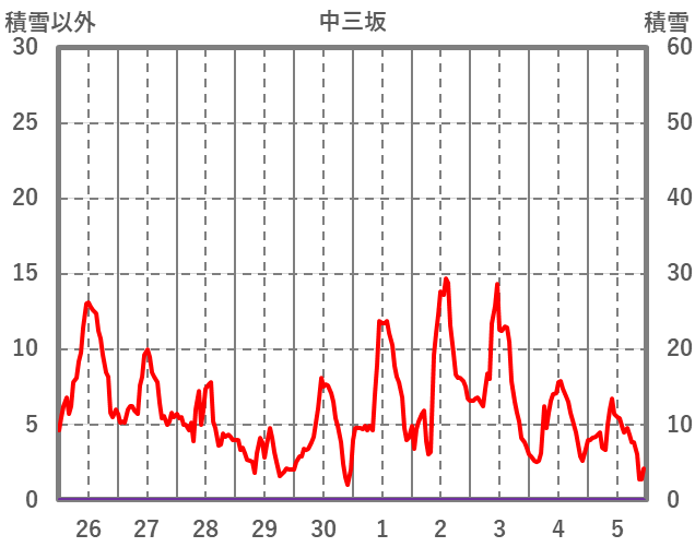 | 日 | 時 | 気温 | 降水 | 風向/風速 | 日照 | 積雪 | 降雪 |