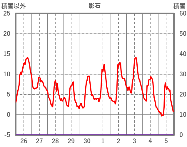 | 日 | 時 | 気温 | 降水 | 風向/風速 | 日照 | 積雪 | 降雪 |