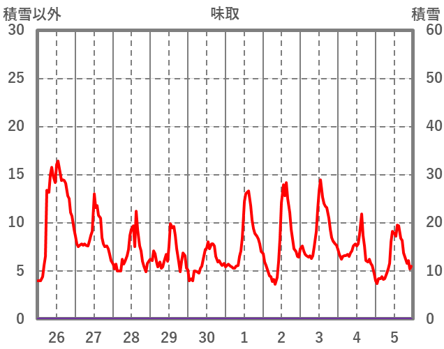| 日 | 時 | 気温 | 降水 | 風向/風速 | 日照 | 積雪 | 降雪 |