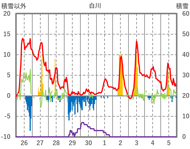 | 日 | 時 | 気温 | 降水 | 風向/風速 | 日照 | 積雪 | 降雪 |