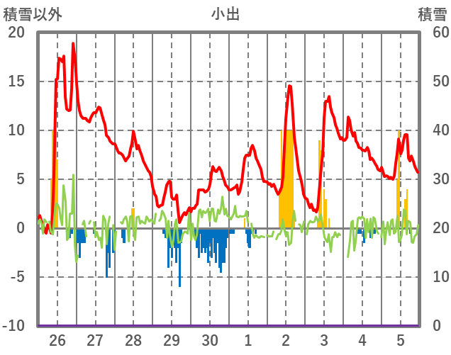 | 日 | 時 | 気温 | 降水 | 風向/風速 | 日照 | 積雪 | 降雪 |