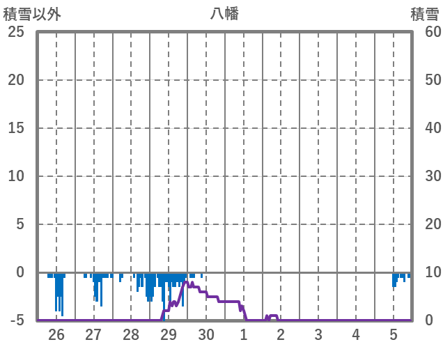 | 日 | 時 | 気温 | 降水 | 風向/風速 | 日照 | 積雪 | 降雪 |