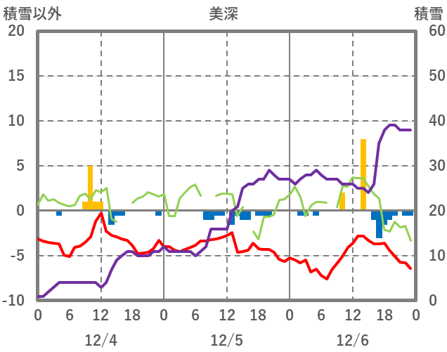 | 日 | 時 | 気温 | 降水 | 風向/風速 | 日照 | 積雪 | 降雪 |