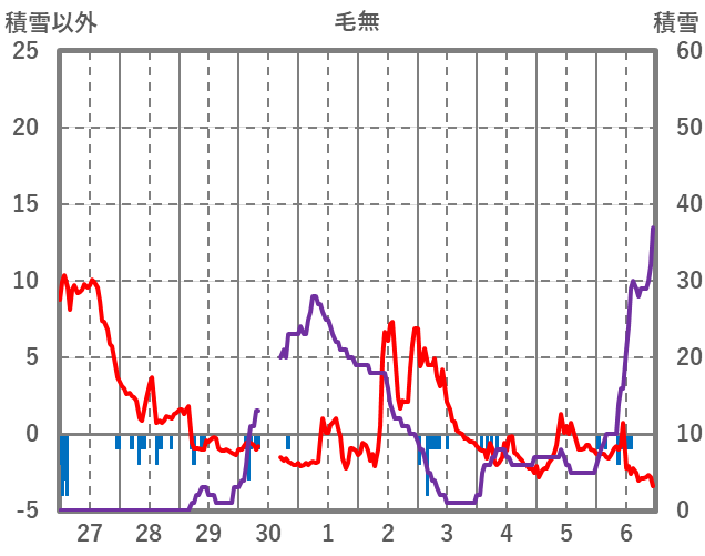 | 日 | 時 | 気温 | 降水 | 風向/風速 | 日照 | 積雪 | 降雪 |