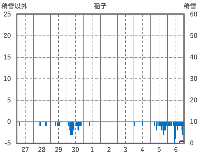 | 日 | 時 | 気温 | 降水 | 風向/風速 | 日照 | 積雪 | 降雪 |