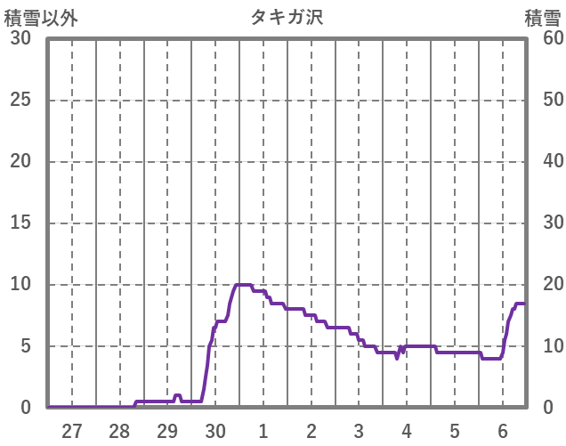 | 日 | 時 | 気温 | 降水 | 風向/風速 | 日照 | 積雪 | 降雪 |