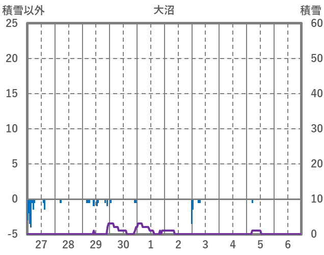 | 日 | 時 | 気温 | 降水 | 風向/風速 | 日照 | 積雪 | 降雪 |