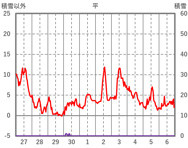| 日 | 時 | 気温 | 降水 | 風向/風速 | 日照 | 積雪 | 降雪 |