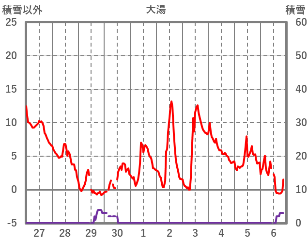 | 日 | 時 | 気温 | 降水 | 風向/風速 | 日照 | 積雪 | 降雪 |