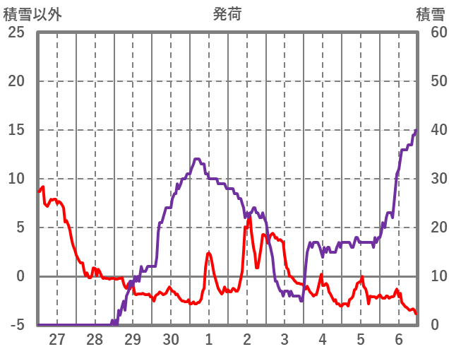 | 日 | 時 | 気温 | 降水 | 風向/風速 | 日照 | 積雪 | 降雪 |