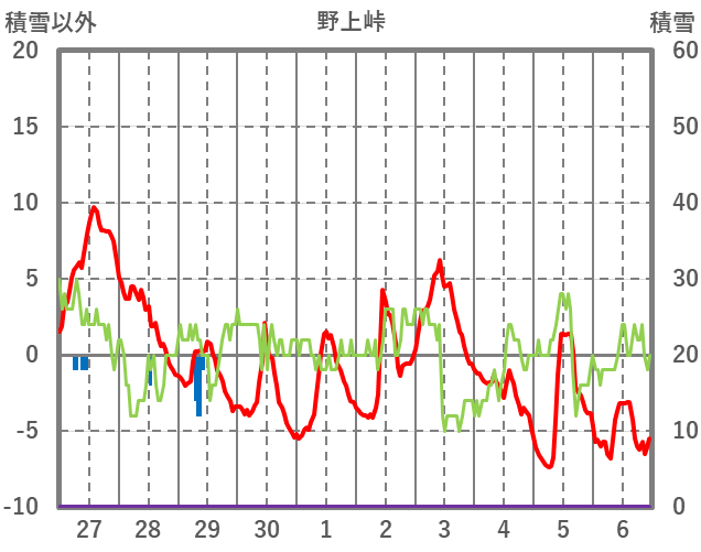 | 日 | 時 | 気温 | 降水 | 風向/風速 | 日照 | 積雪 | 降雪 |