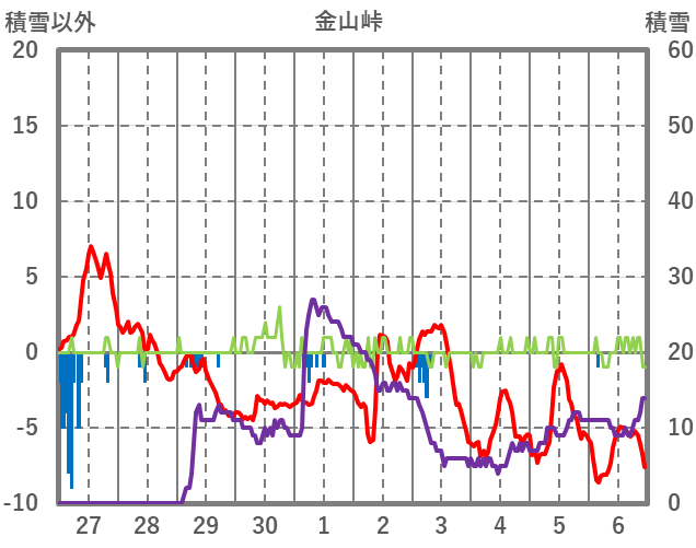 | 日 | 時 | 気温 | 降水 | 風向/風速 | 日照 | 積雪 | 降雪 |
