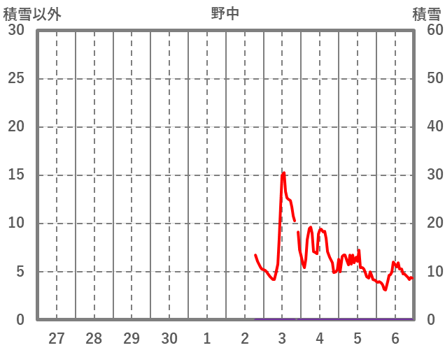 | 日 | 時 | 気温 | 降水 | 風向/風速 | 日照 | 積雪 | 降雪 |