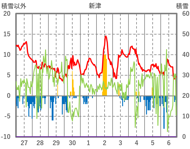 | 日 | 時 | 気温 | 降水 | 風向/風速 | 日照 | 積雪 | 降雪 |