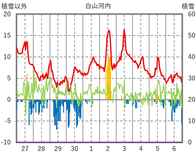 | 日 | 時 | 気温 | 降水 | 風向/風速 | 日照 | 積雪 | 降雪 |