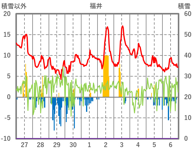 | 日 | 時 | 気温 | 降水 | 風向/風速 | 日照 | 積雪 | 降雪 |