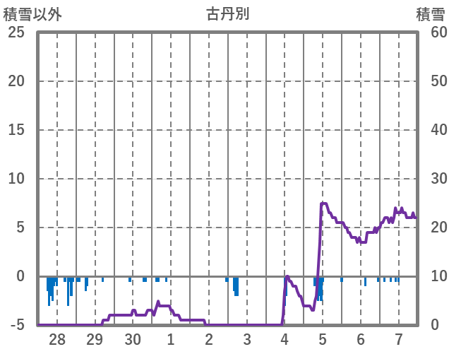 | 日 | 時 | 気温 | 降水 | 風向/風速 | 日照 | 積雪 | 降雪 |