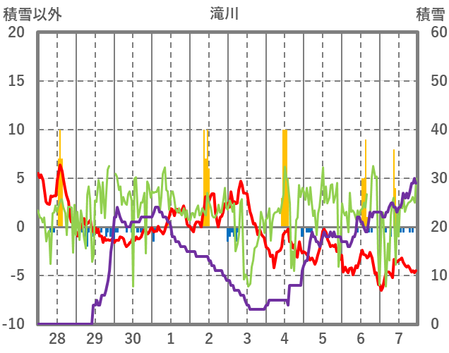 | 日 | 時 | 気温 | 降水 | 風向/風速 | 日照 | 積雪 | 降雪 |