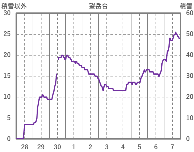 | 日 | 時 | 気温 | 降水 | 風向/風速 | 日照 | 積雪 | 降雪 |
