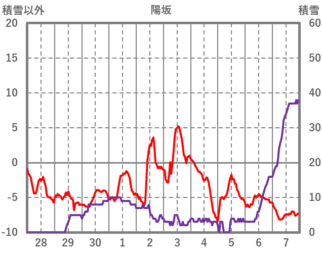 | 日 | 時 | 気温 | 降水 | 風向/風速 | 日照 | 積雪 | 降雪 |