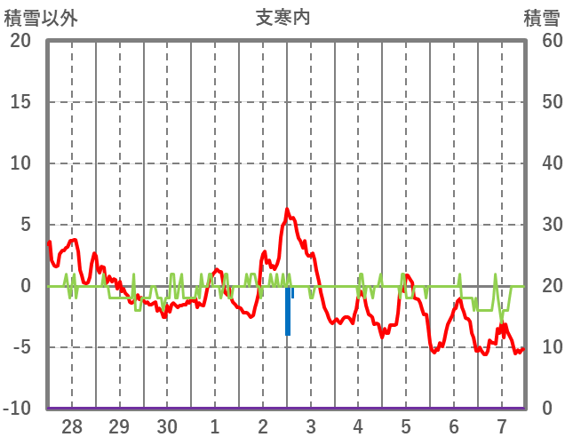 | 日 | 時 | 気温 | 降水 | 風向/風速 | 日照 | 積雪 | 降雪 |