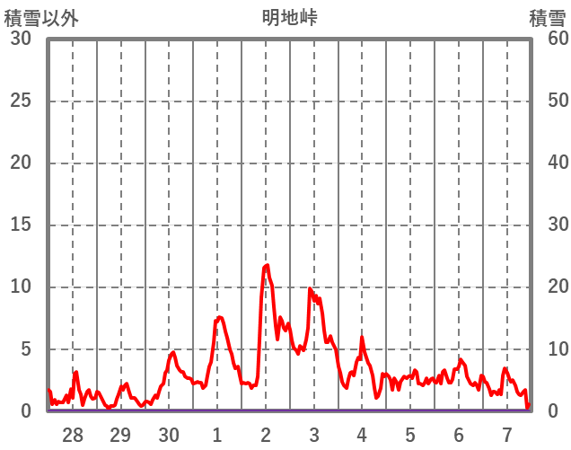 | 日 | 時 | 気温 | 降水 | 風向/風速 | 日照 | 積雪 | 降雪 |