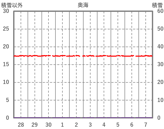 | 日 | 時 | 気温 | 降水 | 風向/風速 | 日照 | 積雪 | 降雪 |
