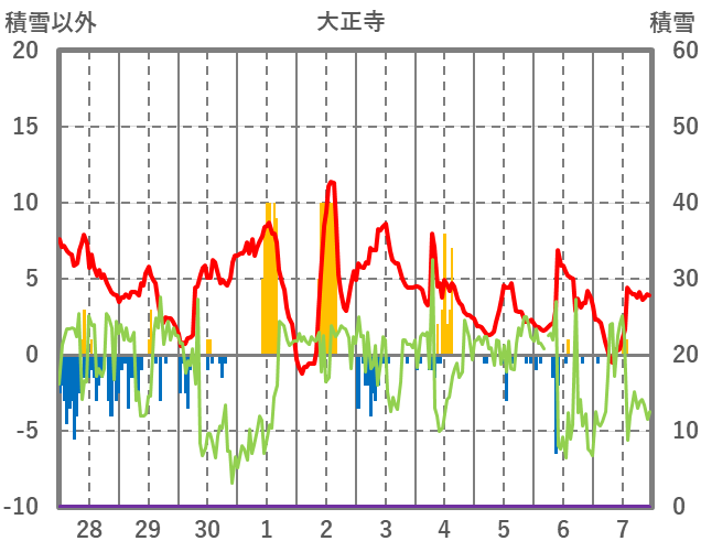 | 日 | 時 | 気温 | 降水 | 風向/風速 | 日照 | 積雪 | 降雪 |