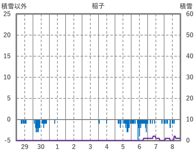 | 日 | 時 | 気温 | 降水 | 風向/風速 | 日照 | 積雪 | 降雪 |