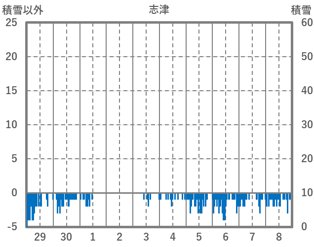 | 日 | 時 | 気温 | 降水 | 風向/風速 | 日照 | 積雪 | 降雪 |