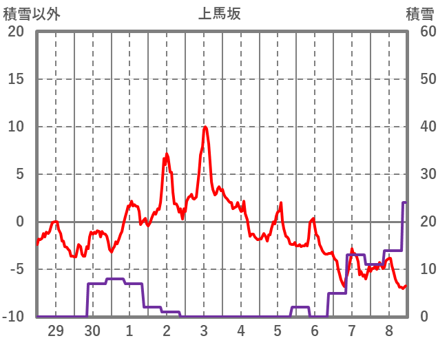 | 日 | 時 | 気温 | 降水 | 風向/風速 | 日照 | 積雪 | 降雪 |