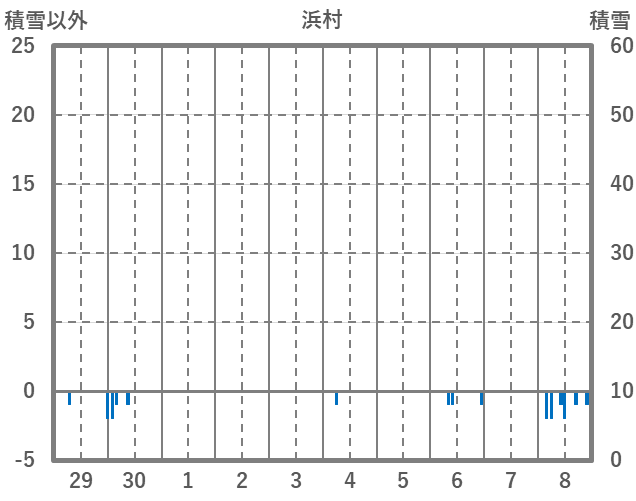 | 日 | 時 | 気温 | 降水 | 風向/風速 | 日照 | 積雪 | 降雪 |