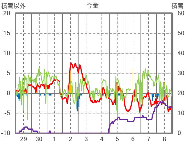 | 日 | 時 | 気温 | 降水 | 風向/風速 | 日照 | 積雪 | 降雪 |