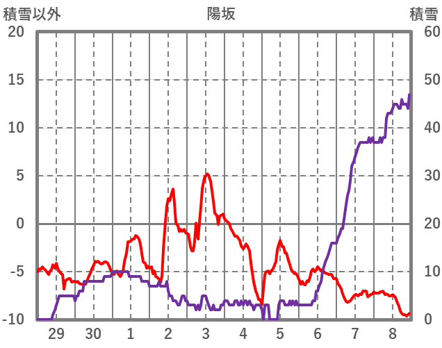 | 日 | 時 | 気温 | 降水 | 風向/風速 | 日照 | 積雪 | 降雪 |