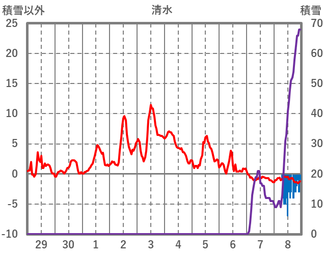 | 日 | 時 | 気温 | 降水 | 風向/風速 | 日照 | 積雪 | 降雪 |