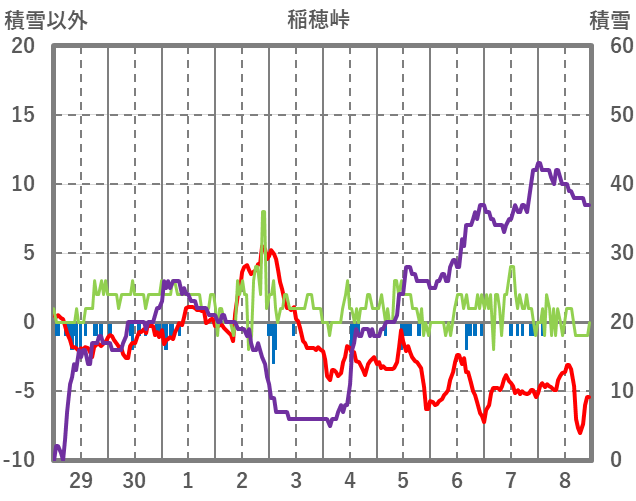 | 日 | 時 | 気温 | 降水 | 風向/風速 | 日照 | 積雪 | 降雪 |