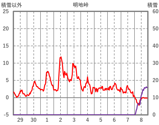| 日 | 時 | 気温 | 降水 | 風向/風速 | 日照 | 積雪 | 降雪 |