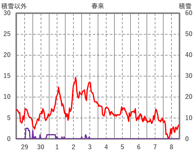 | 日 | 時 | 気温 | 降水 | 風向/風速 | 日照 | 積雪 | 降雪 |