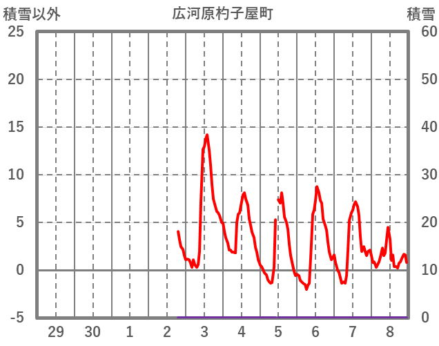 | 日 | 時 | 気温 | 降水 | 風向/風速 | 日照 | 積雪 | 降雪 |