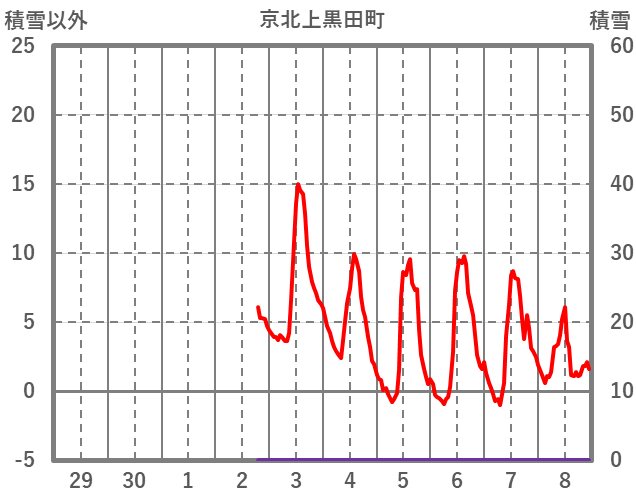 | 日 | 時 | 気温 | 降水 | 風向/風速 | 日照 | 積雪 | 降雪 |