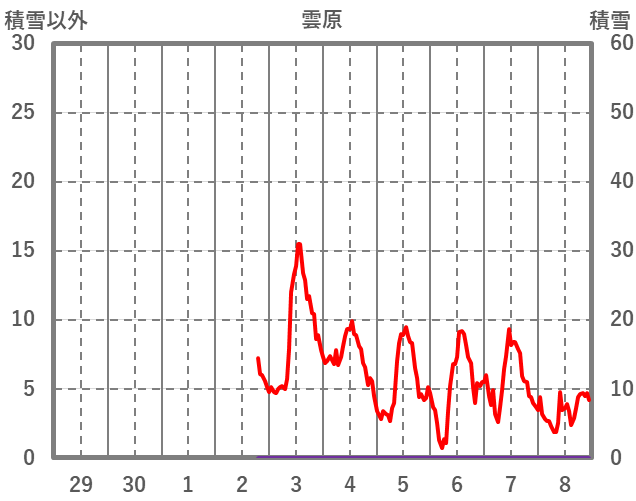 | 日 | 時 | 気温 | 降水 | 風向/風速 | 日照 | 積雪 | 降雪 |