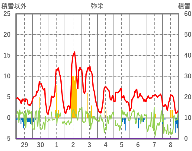 | 日 | 時 | 気温 | 降水 | 風向/風速 | 日照 | 積雪 | 降雪 |