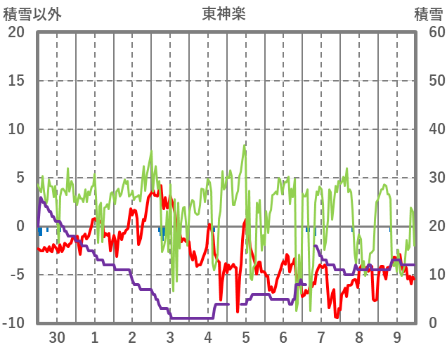 | 日 | 時 | 気温 | 降水 | 風向/風速 | 日照 | 積雪 | 降雪 |