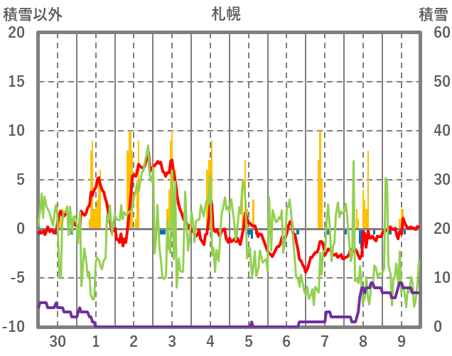 | 日 | 時 | 気温 | 降水 | 風向/風速 | 日照 | 積雪 | 降雪 |