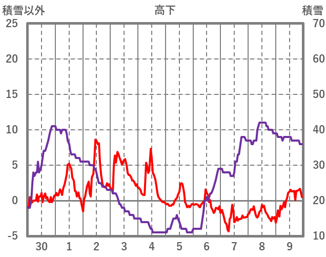 | 日 | 時 | 気温 | 降水 | 風向/風速 | 日照 | 積雪 | 降雪 |