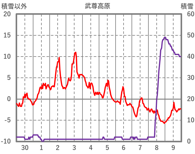 | 日 | 時 | 気温 | 降水 | 風向/風速 | 日照 | 積雪 | 降雪 |
