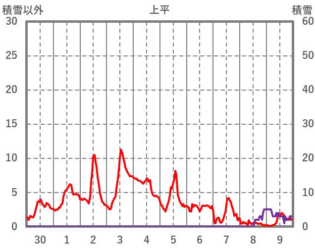 | 日 | 時 | 気温 | 降水 | 風向/風速 | 日照 | 積雪 | 降雪 |