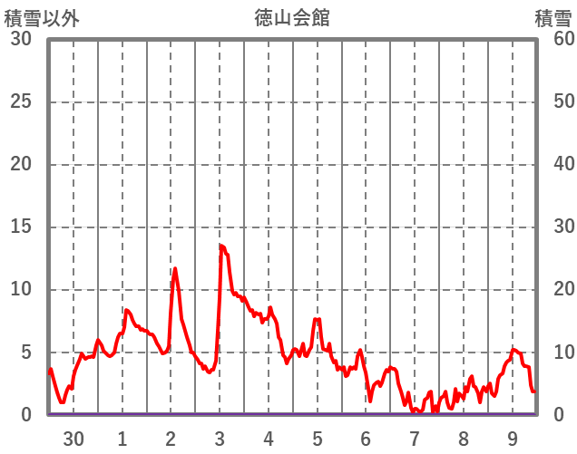 | 日 | 時 | 気温 | 降水 | 風向/風速 | 日照 | 積雪 | 降雪 |