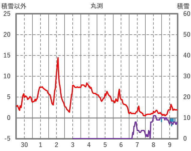 | 日 | 時 | 気温 | 降水 | 風向/風速 | 日照 | 積雪 | 降雪 |