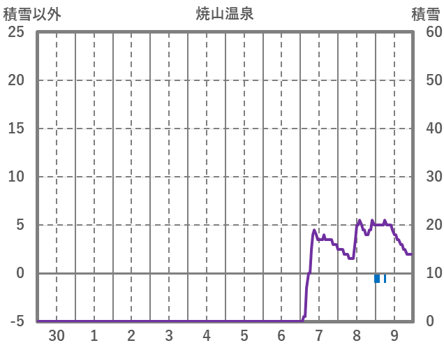 | 日 | 時 | 気温 | 降水 | 風向/風速 | 日照 | 積雪 | 降雪 |